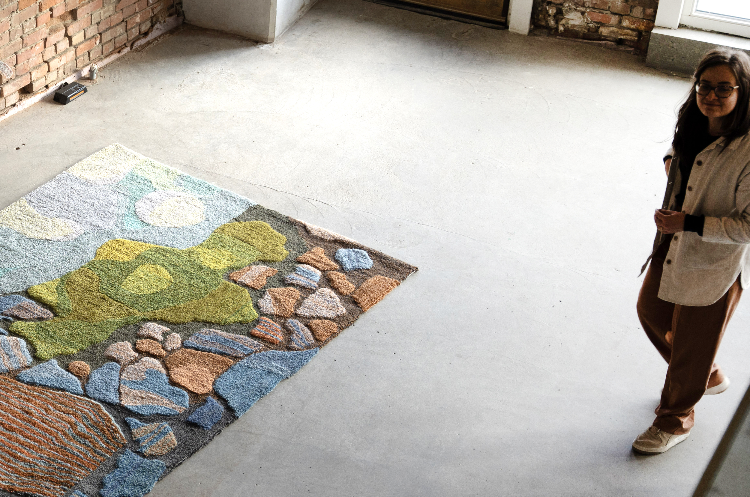 Christine’s work is often a reflection of her deep passion for being in nature as a way to reset, whether it’s exploring mountains or traveling to new places. She is always on the hunt for the awe-inspiring, vibrant colors and patterns that can be found in the natural world. Growing up in a climate characterized by a dead winter of white for most of the year has influenced her to embrace and relish in the colorful moments that nature can offer. Each piece she works on embodies a slice of this colorful wilderness, thoughtfully curated and designed to grace your living space. Each rug is made from 100% wool secured with natural latex to create a sustainable piece that tells a story.